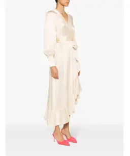 Zimmermann Silk Wrap Midi Dress Beige Size 1 / AU 10