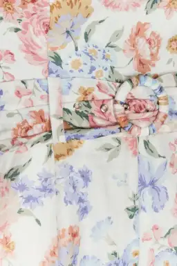 Fabric: Linen weave Round buckle Smocked elastic at back Boned sides Floral print Cropped profile Self-belt at waist On-seam hip pockets Shell: 100% linenLined Lining: 100% cotton