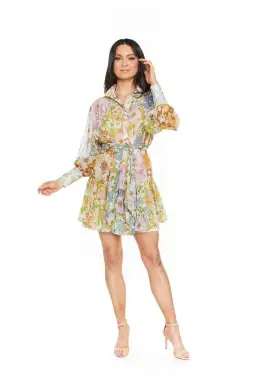 Feel fresh and feminine in this Zimmermann Super Eight Lantern Mini Dress in Mixed Floral. This floral mini dress is fabricated in a beautiful silk cotton georgette and features a high neckline with front button detailing, full-length sleeves with large cuffs and a matching fabric belt. Perfect to rent and wear for the races!