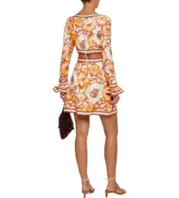 Zimmermann Super Eight Ribbon Mini Dress in Toffee Poppy Size 3