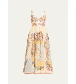 Zimmermann Tallow Tucked Bodice Midi Dress Nautical Map Size 2/AU 12
