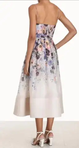 Zimmermann Tama Corset Midi Dress Purple Pansy Floral Print Size 2 / 12 AU