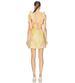 Zimmermann The Golden Ruffle Mini Dress in Pink/Gold Floral Size 0/Au 8