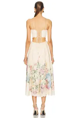 Zimmermann The Halliday Scallop Midi Dress in Cream Watercolour Floral Size 2 / AU 12
