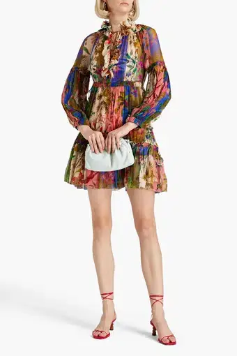 Zimmermann Tropicana Lantern Ruffle Mini Dress Multi Floral Size 0/Au 8