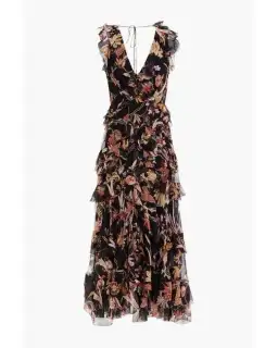 Zimmermann Wavelength Ruffled Silk Georgette Midi Dress in Black/Floral Print
