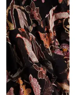 Floral-print, silk-georgette ruffled ties at back with concealed zip