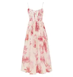 Zimmermann Waverly Corset Midi Dress in Pink Palm Size 0 / AU 8