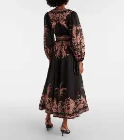 Zimmermann The Waverly Wrap Midi Dress in Black Bird Floral Size 4 /Au 16