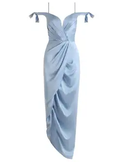 Zimmermann Winsome Drape Cocktail Midi Dress Blue Size 2/ AU 12