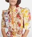 This is a Zimmermann size OP versatile shirt dress made from spliced stripes made from linen with a floral print. Part of the Wonderland collection, this design features a button placket at front, raffia effect details and a detachable belt with wooden buckle.