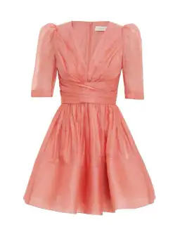 Zimmermann The Wonderland Sleeved Mini Dress in Guava Size 3/Au 14