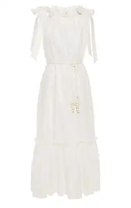 Zimmermann Zinnia Metallic Polka Dot Linen Midi Dress Size AU 8